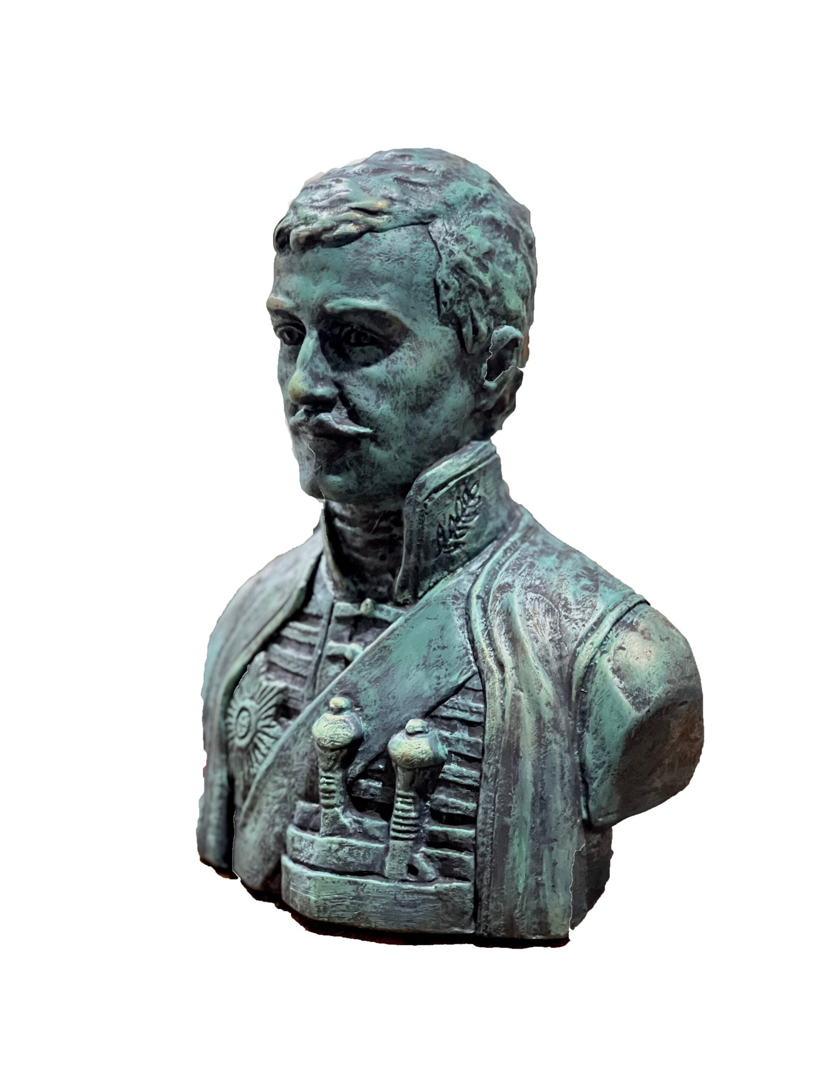 Bista vođe Prvog srpskog ustanka simbolizuje hrabrost i odlučnost, naglašavajući njegovo istorijsko mesto.